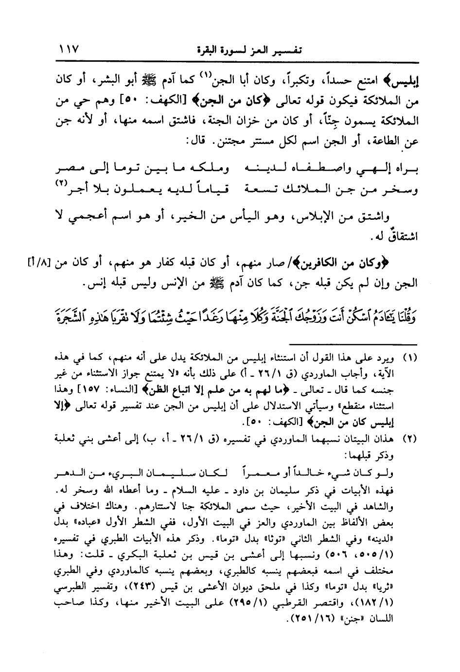{وَكَانَ مِنَ الْكَافِرِينَ} / صار منهم، أو كان قبله كفار هو منهم، أو كان من [8 / أ] الجن وإن لم يكن قبله جن، كما كان آدم صلى الله عليه وسلم من الإنس وليس قبله إنس.