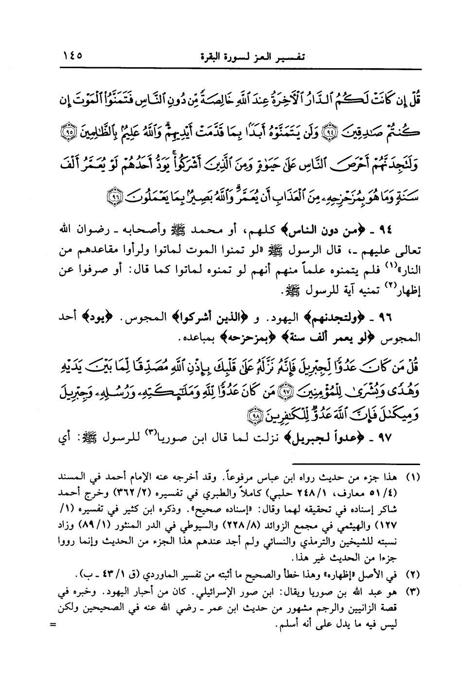 96 - {ولتجدنهم} اليهود. {الَّذِينَ أَشْرَكُواْ} المجوس. {يَوَدُّ} أحد المجوس {لَوْ يعمر ألف سنة} {بمزحزحه} بمباعده.