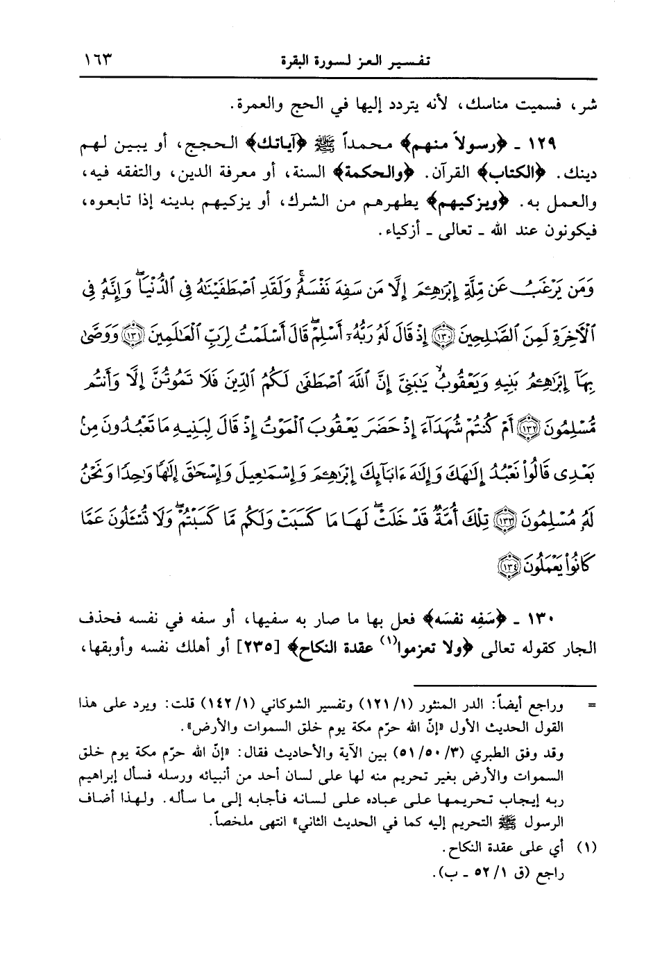 130 - {سَفِهَ نَفْسَهُ} فعل بها ما صار به سفيهاً، أو سفه في نفسه فحذف الجار كقوله تعالى {ولا تعزموا عقدة النكاح} [235] أو أهلك نفسه وأوبقها،