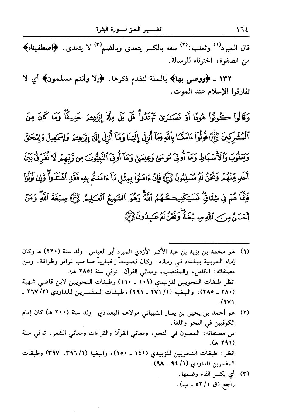 132 - {وَوَصَّى بِهَآ} بالملة لتقدم ذكرها. {إِلاَّ وَأَنتُم مُّسْلِمُونَ} أي لا تفارقوا الإسلام عند الموت.
