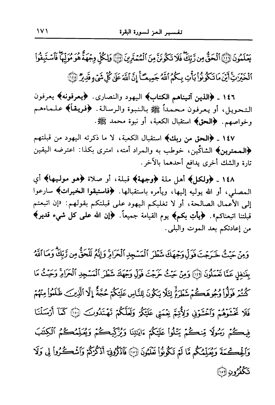 يعلمون (146) الحق من ربك فلا تكونن من الممترين (147) ولكل وجهة هو موليها فاستبقوا الخيرات أين ما تكونوا يأت بكم الله جميعاً إِنَّ اللَّهَ عَلَى كُلِّ شَىءٍ قَدِيرٌ (148) }