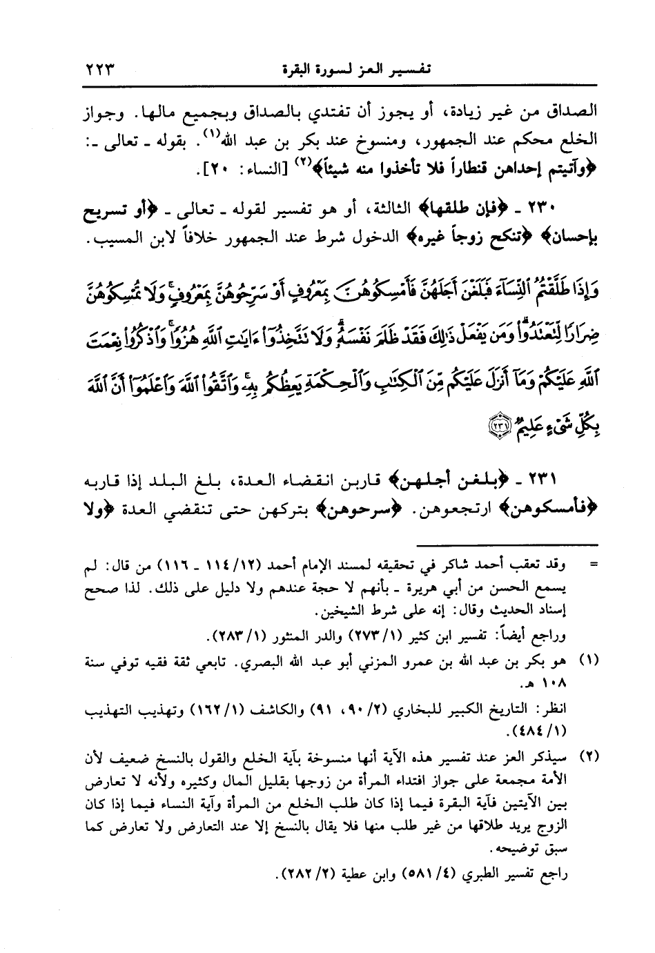 231 - {بلغن أَجَلهُنَّ} قاربن انقضاء العدة، بلغ البلد إذا قاربه {فَأَمْسِكُوهُنَ} ارتجعوهن. {سَرِّحُوهُنَّ} بتركهن حتى تنقضي العدة {ولا