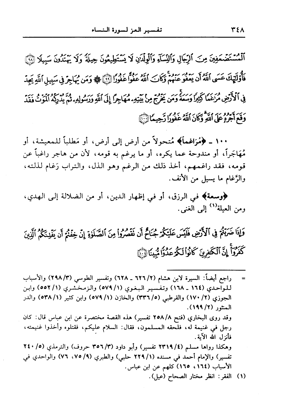 المستضعفين من الرجال والنسآء والولدان لا يستطيعون حيلة ولا يهتدون سبيلا (98) فأولئك عسى الله أن يعفو عنهم وكان الله عفواً غفوراً (99) ومن يهاجر في سبيل الله يجد في الأرض مراغماً كثيراً وسعة ومن يخرج من بيته مهاجراً إلى الله ورسوله ثم يدركه الموت فقد وقع أجره على الله وكان الله غفوراً رحيماً (100) }