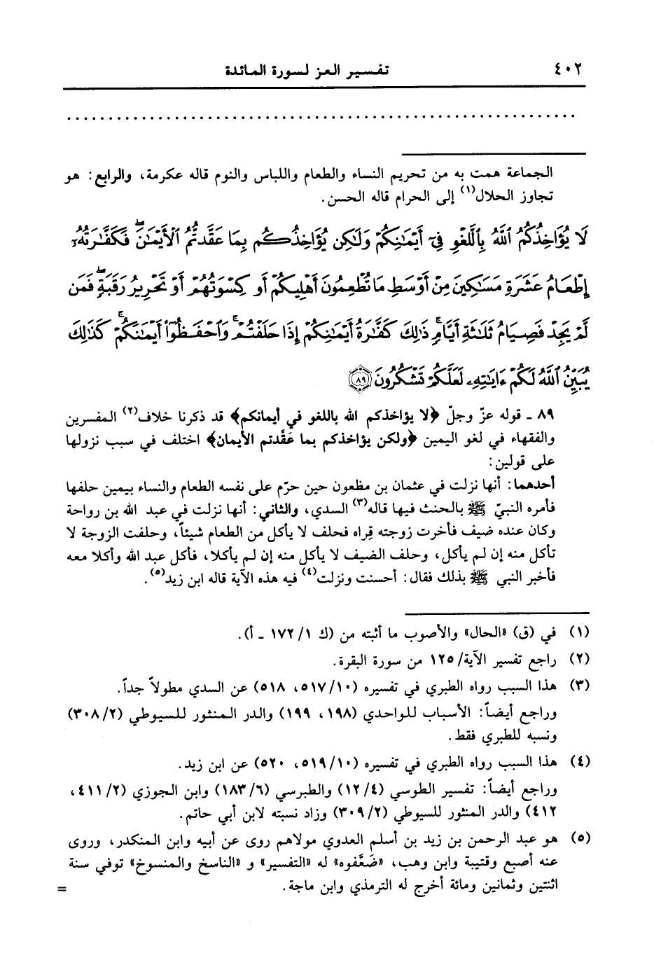 89 - قوله عزّ وجلّ {لا يُؤَاخِذُكُمُ اللَّهُ بِالَّلغْوِ فِى أَيْمَانِكُمْ} قد ذكرنا خلاف المفسرين والفقهاء في لغو اليمين {وَلكِن يُؤَاخِذُكُم بِمَا عَقَّدتُمُ الأيمان} اختلف في سبب نزولها على قولين: