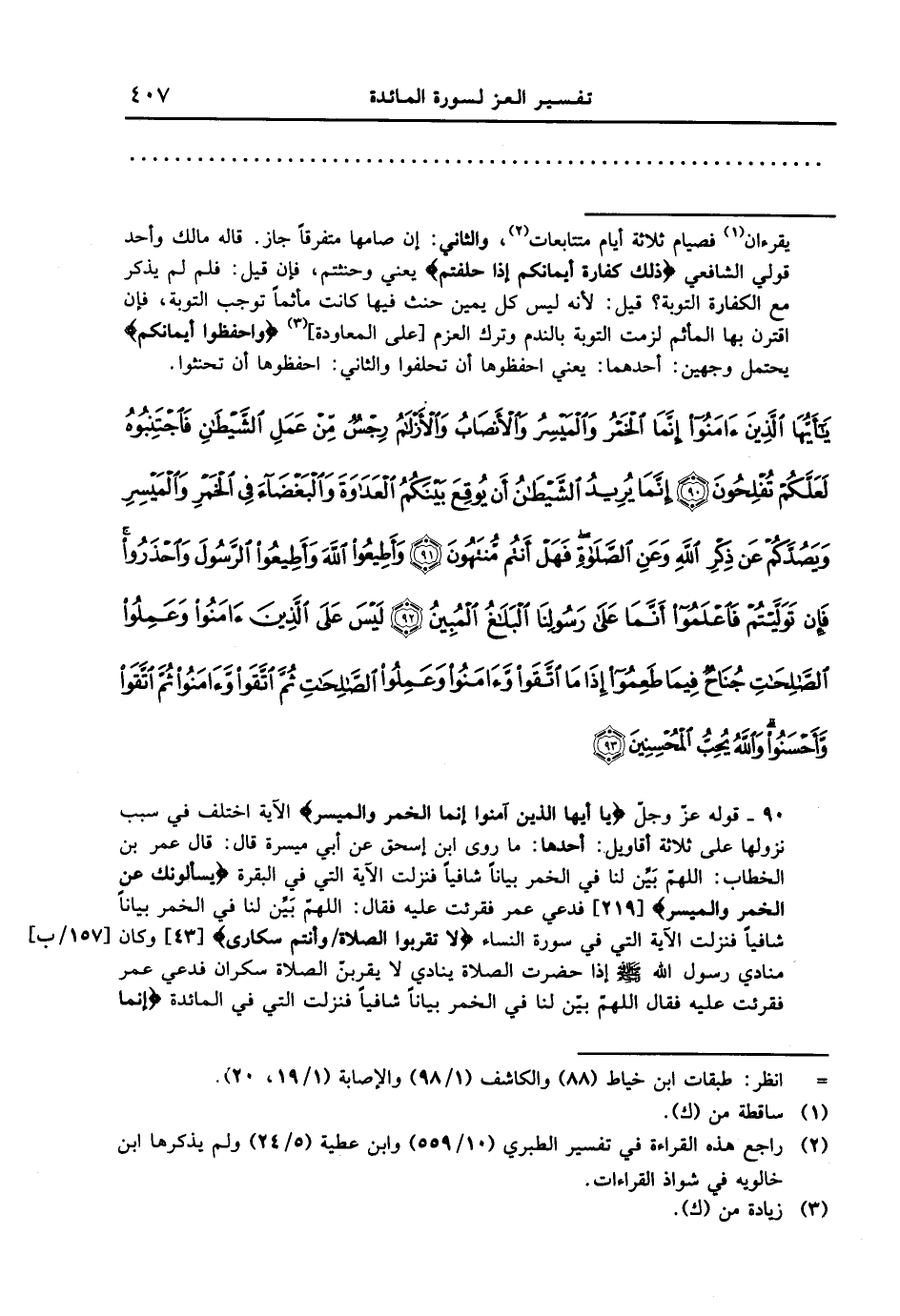 90 - قوله عز وجل {يا أيها الذين آمنوا إِنَّمَا الْخَمْرُ وَالْمَيْسِرُ} الآية اختلف في سبب نزولها على ثلاثة أقاويل: