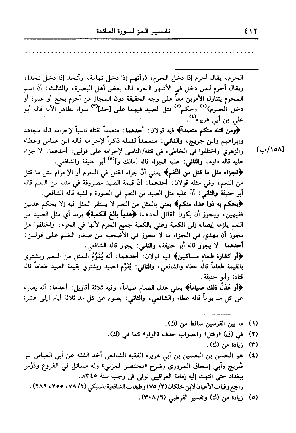 والثاني: أنّ عليه مثل الصيد من النعم في الصورة والشبه قاله الشافعي. {يَحْكُمُ بِهِ ذّوَا عَدْلٍ مِّنكُمْ} يعني بالمثل من النعم لا يستقر المثل فيه إلا بحكم عدلين فقيهين، ويجوز أن يكون القاتل أحدهما {هَدْيَاً بَالِغَ الْكَعْبَةِ} يريد أي مثل الصيد من النعم يلزمه إيصاله إلى الكعبة وعني بالكعبة جميع الحرم لأنها في الحرم، واختلفوا هل يجوز أن يهدي في الجزاء ما لا يجوز في الأضحية من صغار الغنم على قولين: