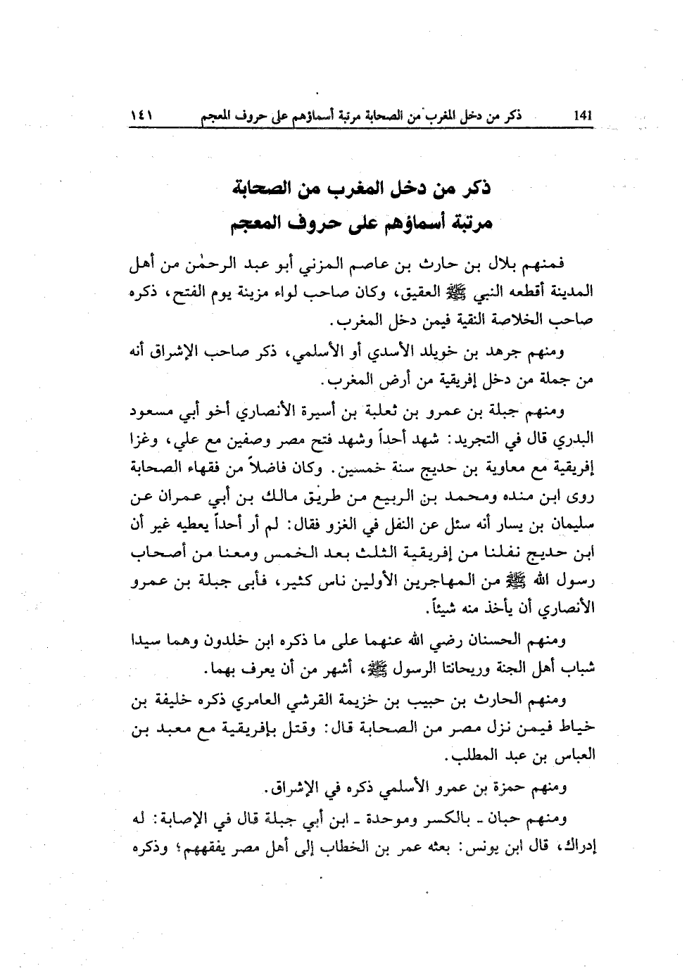 ذكر من دخل الْمغرب من الصَّحَابَة مرتبَة أَسمَاؤُهُم على حُرُوف المعجم