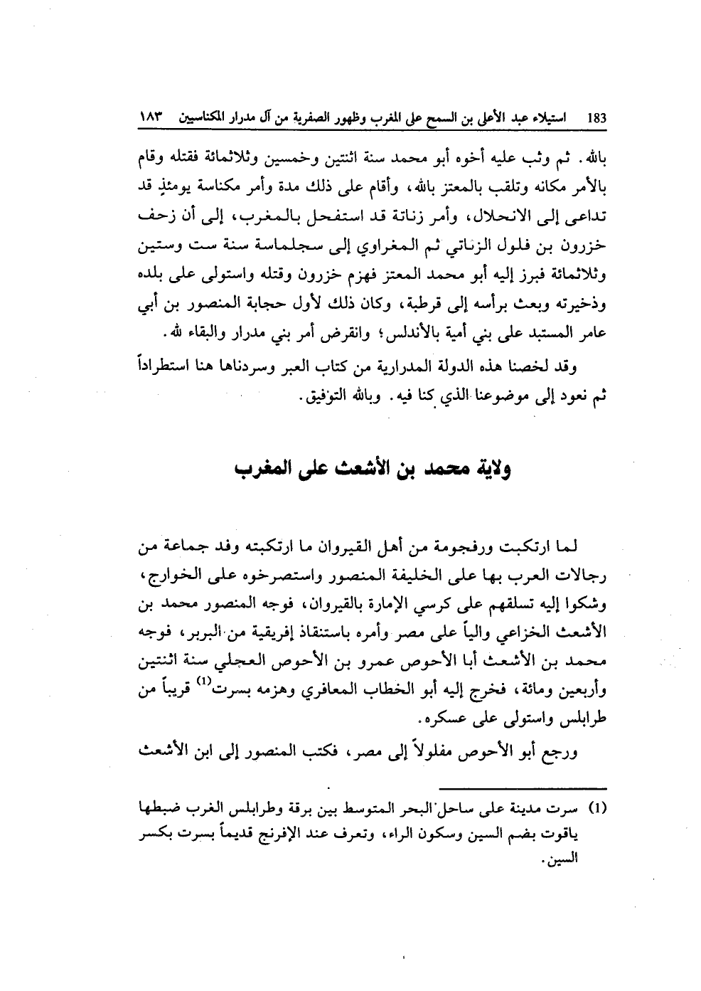 وَقد لخصنا هَذِه الدولة المدرارية من كتاب العبر وسردناها هُنَا اسْتِطْرَادًا ثمَّ نعود إِلَى موضوعنا الَّذِي كُنَّا فِيهِ وَبِاللَّهِ التَّوْفِيق