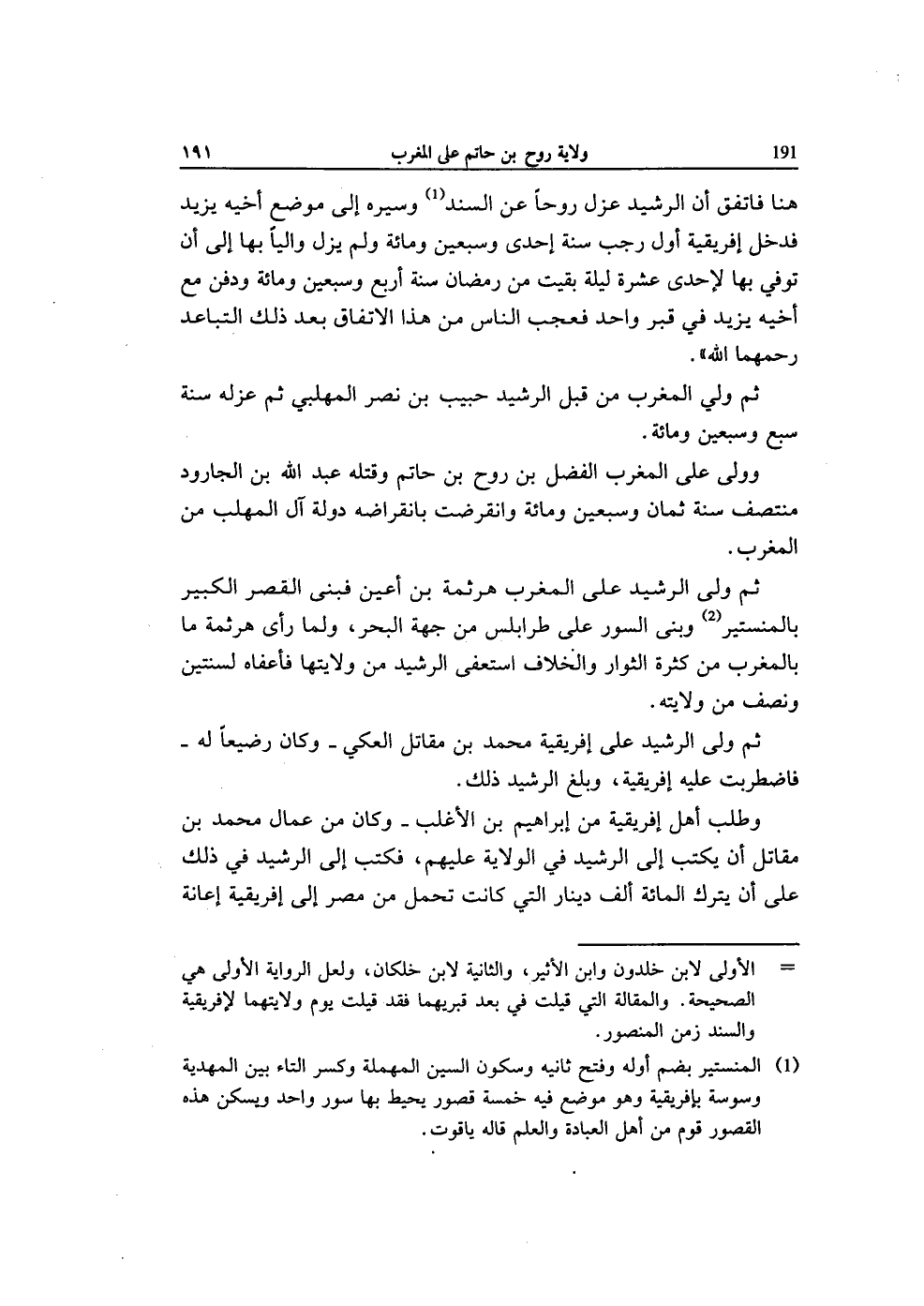 ثمَّ ولي الْمغرب من قبل الرشيد حبيب بن نصر المهلبي ثمَّ عَزله سنة سبع وَسبعين وَمِائَة