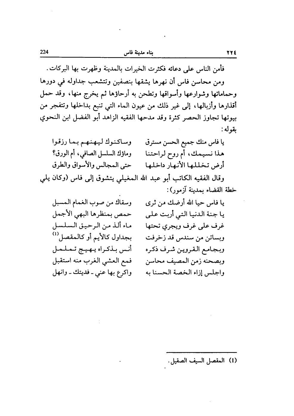 (يَا فاس حَيا الله أَرْضك من ثرى ... وسقاك من صوب الْغَمَام المسبل)