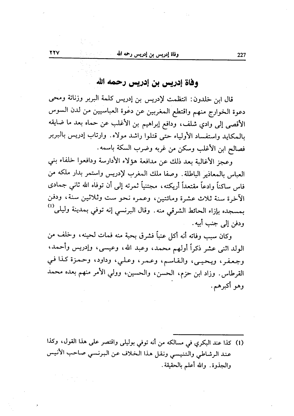 وَفَاة إِدْرِيس بن إِدْرِيس رَحمَه الله