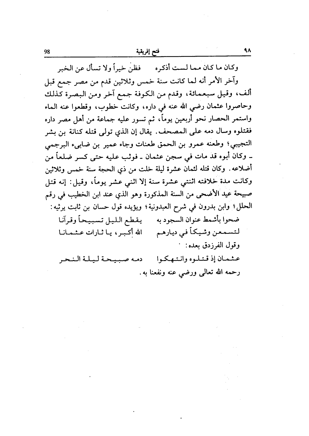 (عُثْمَان إِذْ قَتَلُوهُ وانتهكوا ... دَمه صَبِيحَة لَيْلَة النَّحْر)