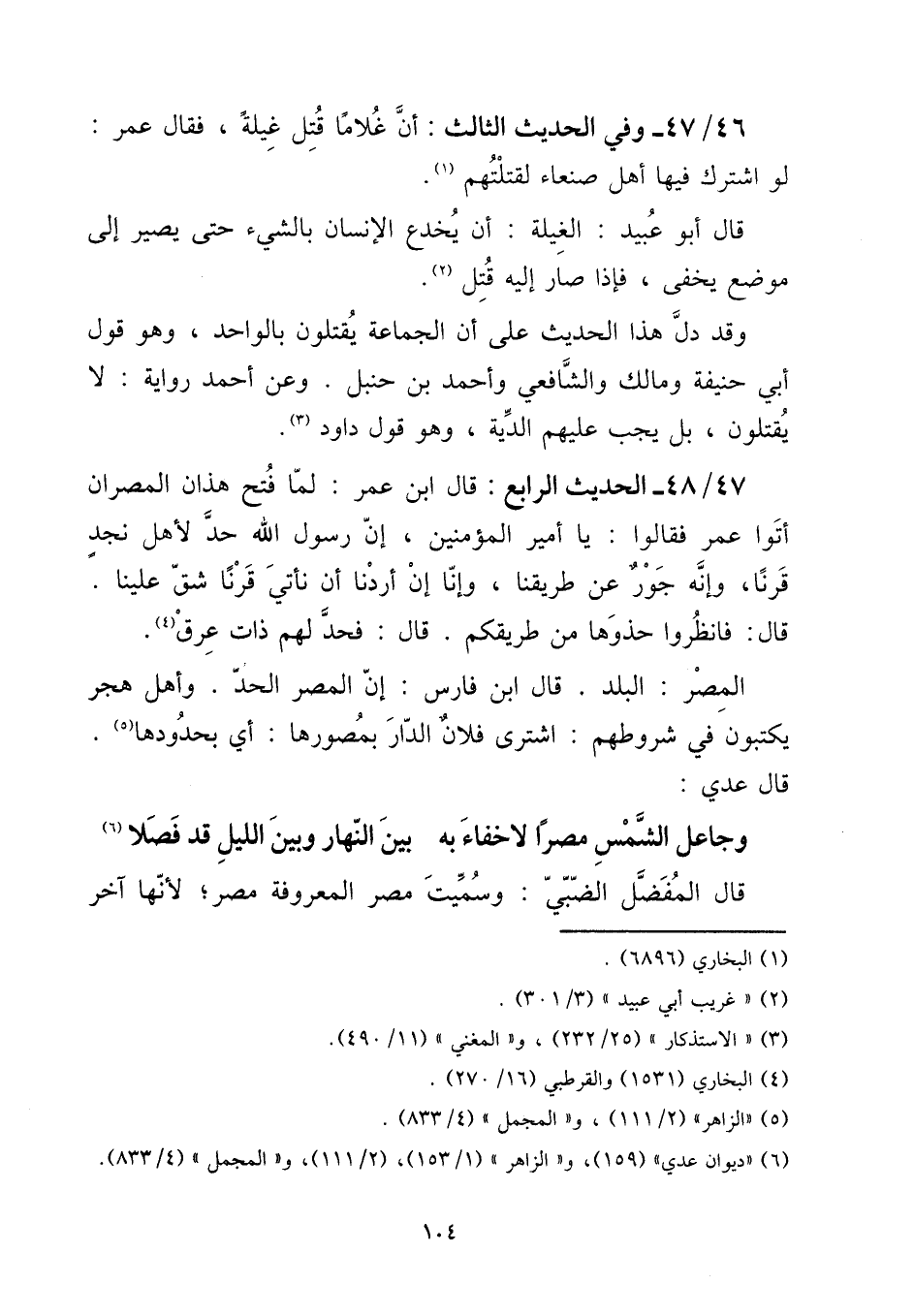 46 - / 47 - وَفِي الحَدِيث الثَّالِث: أَن غُلَاما قتل غيلَة، فَقَالَ عمر: لَو اشْترك فِيهَا أهل صنعاء لقتلتهم.