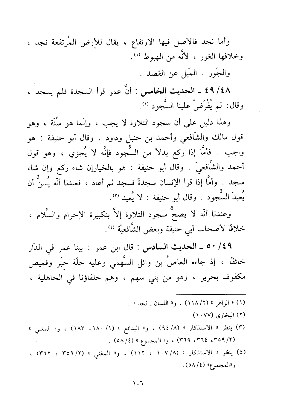 49 - / 50 - الحَدِيث السَّادِس: قَالَ ابْن عمر: بَينا عمر فِي الدَّار خَائفًا، إِذْ جَاءَهُ الْعَاصِ بن وَائِل السَّهْمِي وَعَلِيهِ حلَّة حبر وقميص مكفوف بحرير، وَهُوَ من بني سهم، وهم حلفاؤنا فِي الْجَاهِلِيَّة،