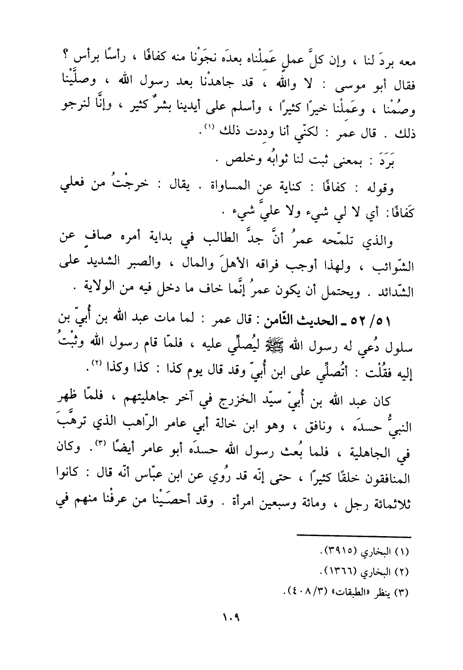51 - / 52 - الحَدِيث الثَّامِن: قَالَ عمر: لما مَاتَ عبد الله بن أبي بن سلول دعِي لَهُ رَسُول الله صلى الله عَلَيْهِ وَسلم ليُصَلِّي عَلَيْهِ، فَلَمَّا قَامَ رَسُول الله وَثَبت إِلَيْهِ فَقلت: أَتُصَلِّي على ابْن أبي وَقد قَالَ يَوْم كَذَا: كَذَا وَكَذَا.