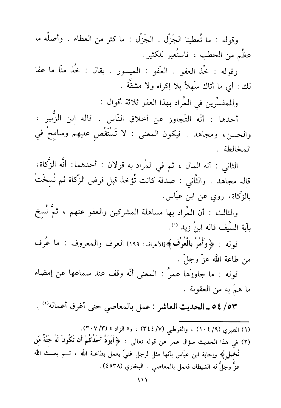 53 - / 54 - الحَدِيث الْعَاشِر: عمل بِالْمَعَاصِي حَتَّى أغرق أَعماله.