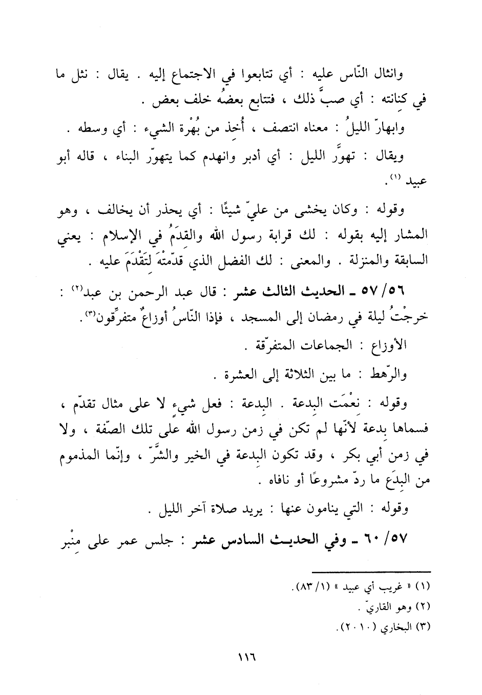 56 - / 57 - الحَدِيث الثَّالِث عشر: قَالَ عبد الرَّحْمَن بن عبد: خرجت لَيْلَة فِي رَمَضَان إِلَى الْمَسْجِد، فَإِذا النَّاس أوزاع متفرقون.