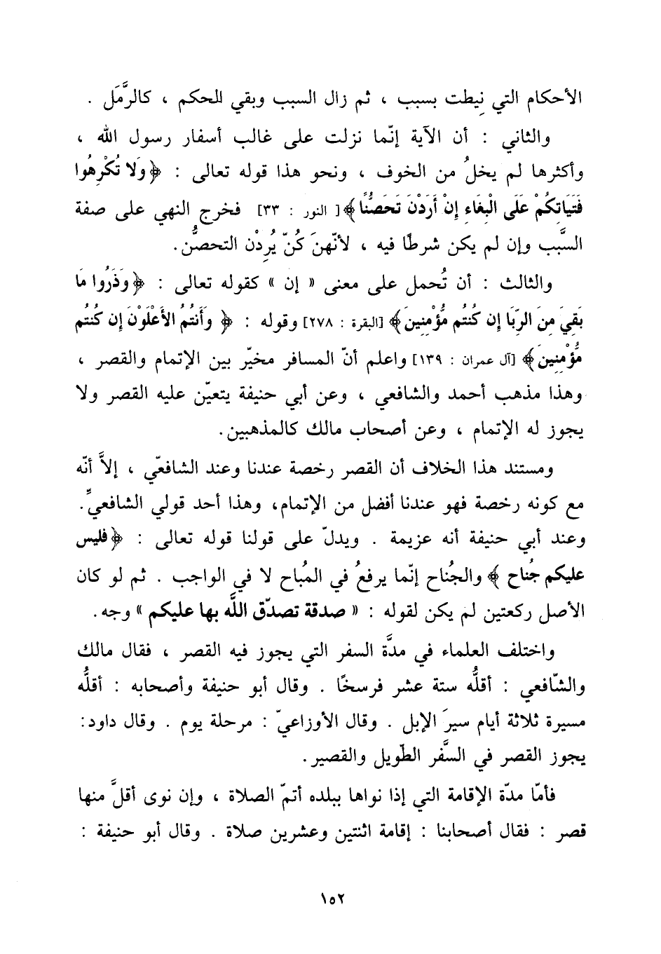 وَالثَّالِث: أَن تحمل على معنى " إِن " كَقَوْلِه تَعَالَى: {وذروا مَا بَقِي من الرِّبَا إِن كُنْتُم مُؤمنين} [الْبَقَرَة: 278] وَقَوله: {وَأَنْتُم الأعلون إِن كُنْتُم مُؤمنين} [آل عمرَان: 139] وَاعْلَم أَن الْمُسَافِر مُخَيّر بَين الْإِتْمَام وَالْقصر، وَهَذَا مَذْهَب أَحْمد وَالشَّافِعِيّ، وَعَن أبي حنيفَة يتَعَيَّن عَلَيْهِ الْقصر وَلَا يجوز لَهُ الْإِتْمَام، وَعَن أَصْحَاب مَالك كالمذهبين.