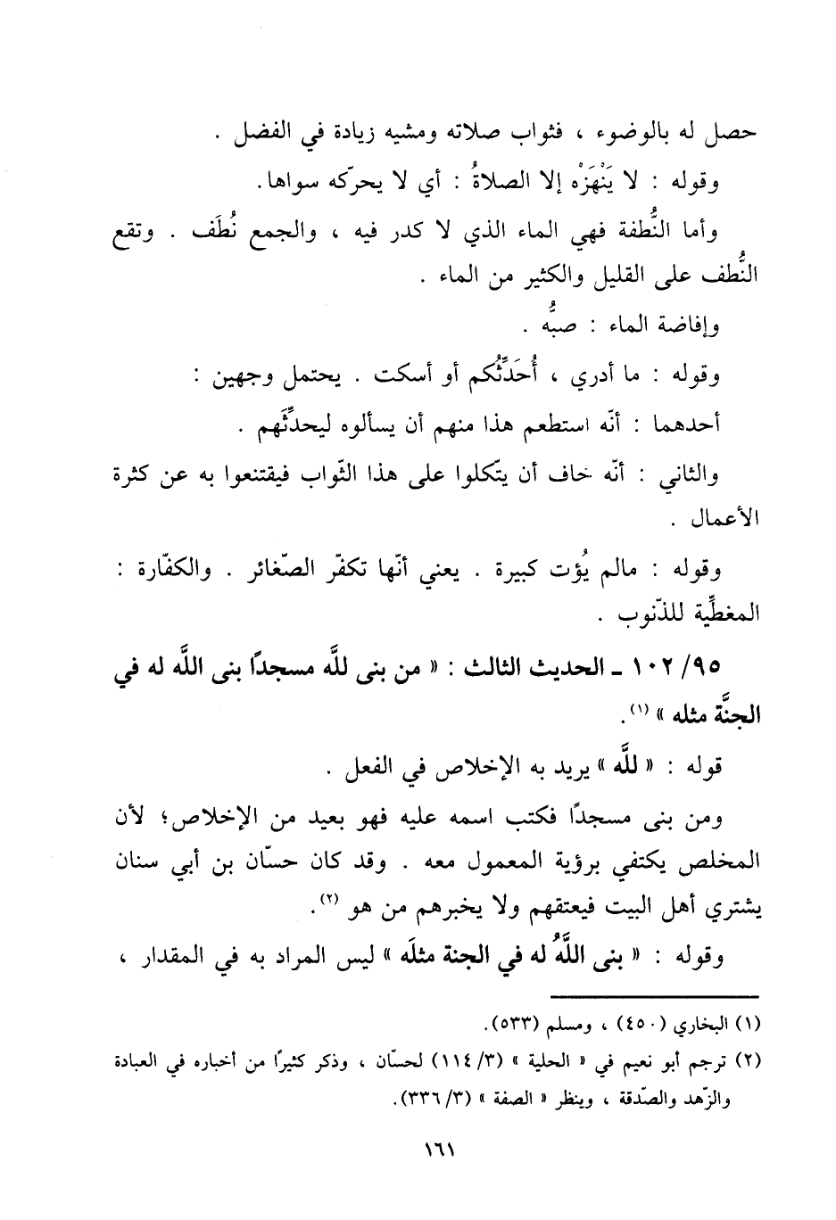 95 - / 102 - الحَدِيث الثَّالِث: " من بنى لله مَسْجِدا بنى الله لَهُ فِي الْجنَّة مثله ".