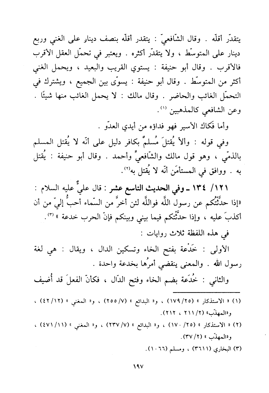 121 - / 134 - وَفِي الحَدِيث التَّاسِع عشر: قَالَ عَليّ عَلَيْهِ السَّلَام: " إِذا حدثتكم عَن رَسُول الله فو الله لَئِن أخر من السَّمَاء أحب إِلَيّ من أَن أكذب عَلَيْهِ، وَإِذا حدثتكم فِيمَا بيني وَبَيْنكُم فَإِن الْحَرْب خدعة ".