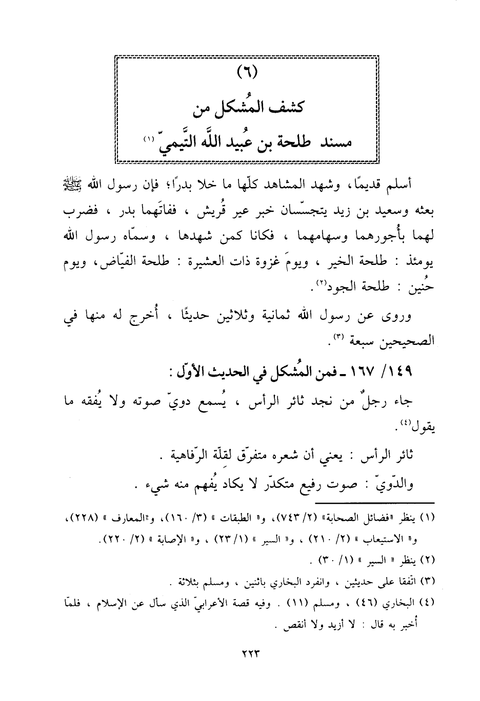 كشف الْمُشكل من مُسْند طَلْحَة بن عبيد الله التَّيْمِيّ