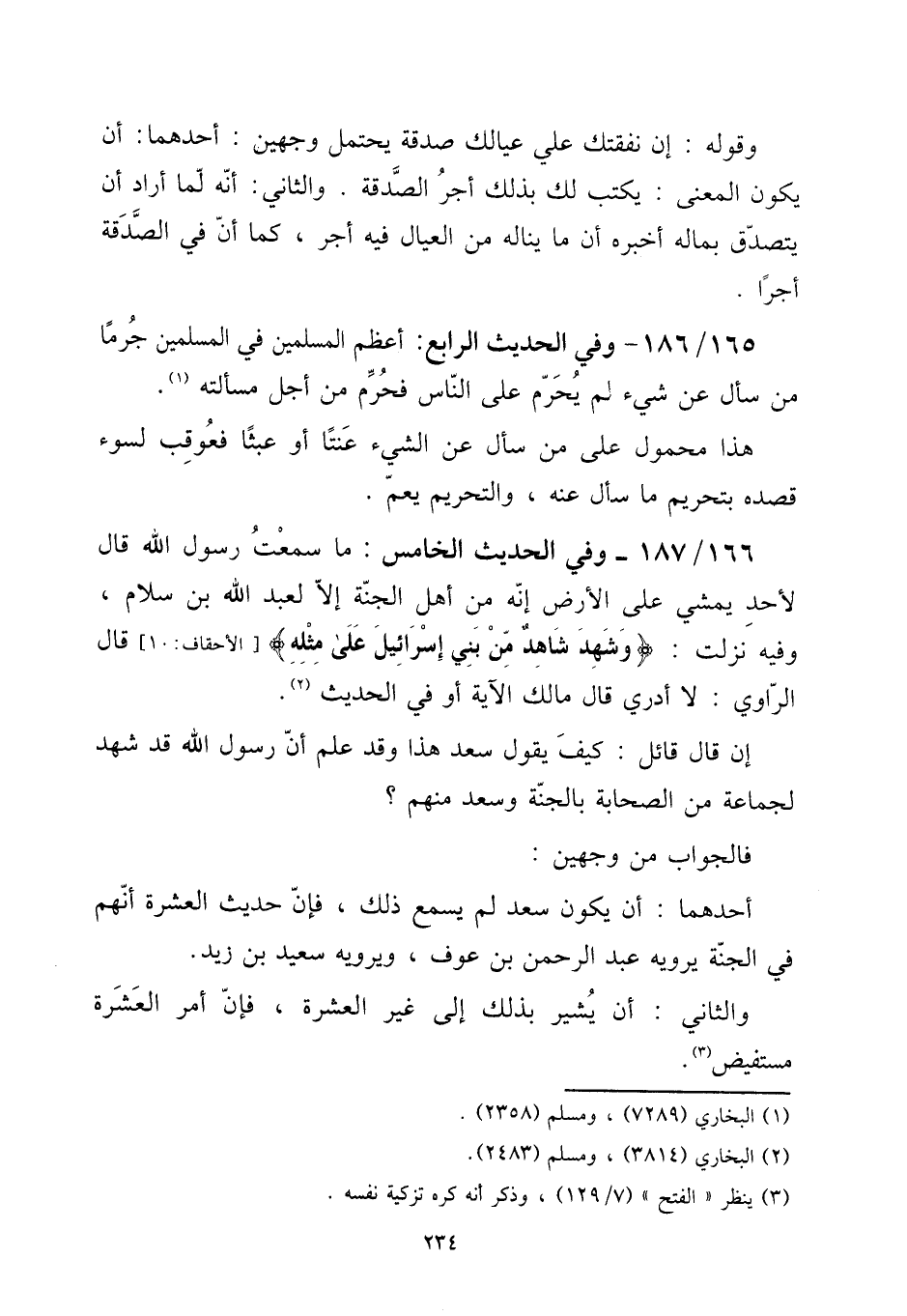 إِن قَالَ قَائِل: كَيفَ يَقُول سعد هَذَا وَقد علم أَن رَسُول الله قد شهد لجَماعَة من الصَّحَابَة بِالْجنَّةِ وَسعد مِنْهُم؟