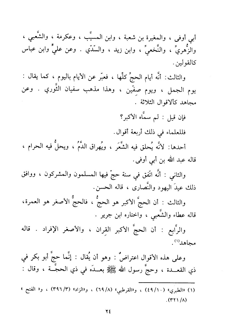 وَالثَّالِث: أَن الْحَج الْأَكْبَر هُوَ الْحَج، فالحج الْأَصْغَر هُوَ الْعمرَة، قَالَه عَطاء وَالشعْبِيّ، وَاخْتَارَهُ ابْن جرير.