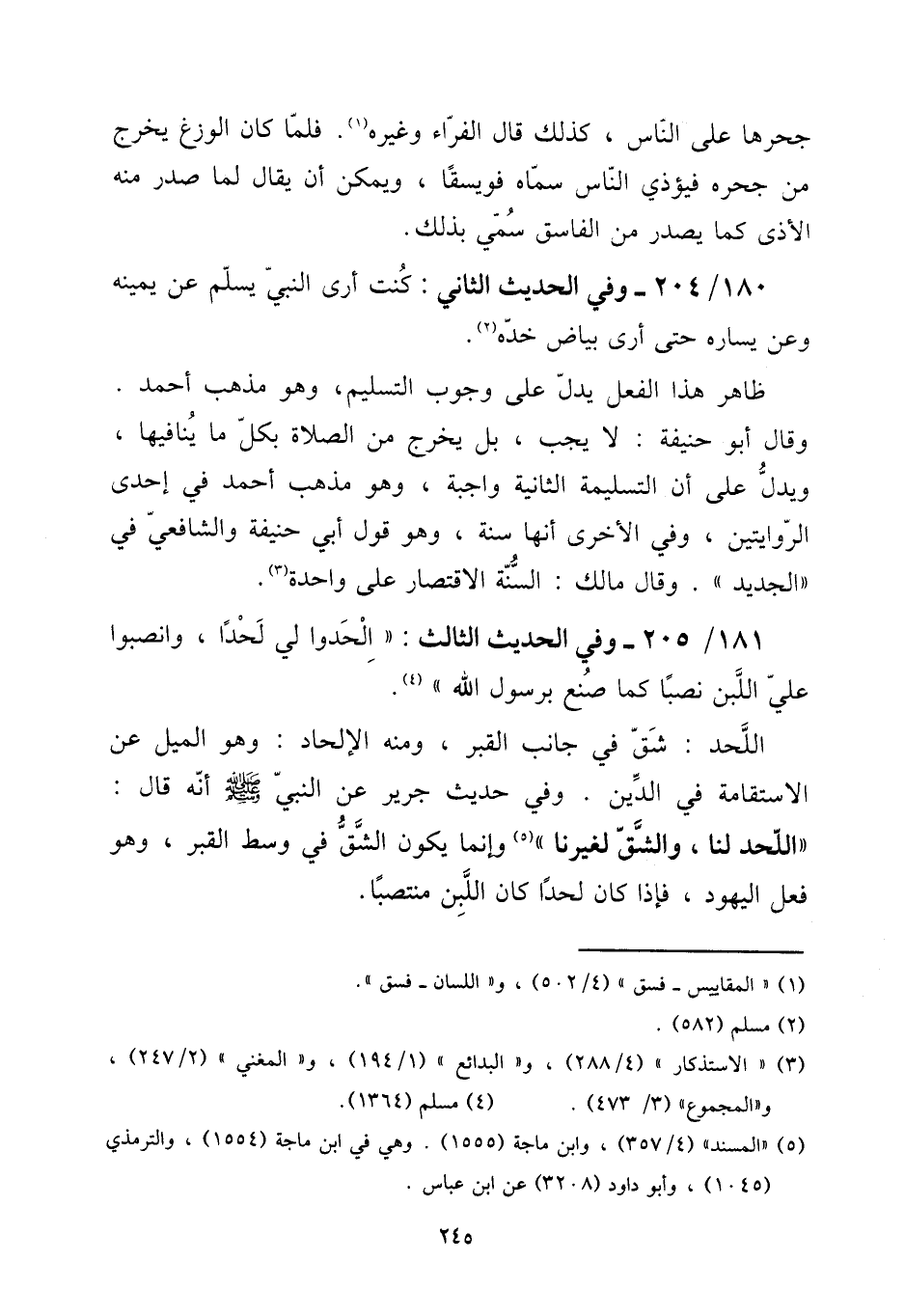 181 - / 205 - وَفِي الحَدِيث الثَّالِث: " الحدوا لي لحدا، وانصبوا عَليّ اللَّبن نصبا كَمَا صنع برَسُول الله ".