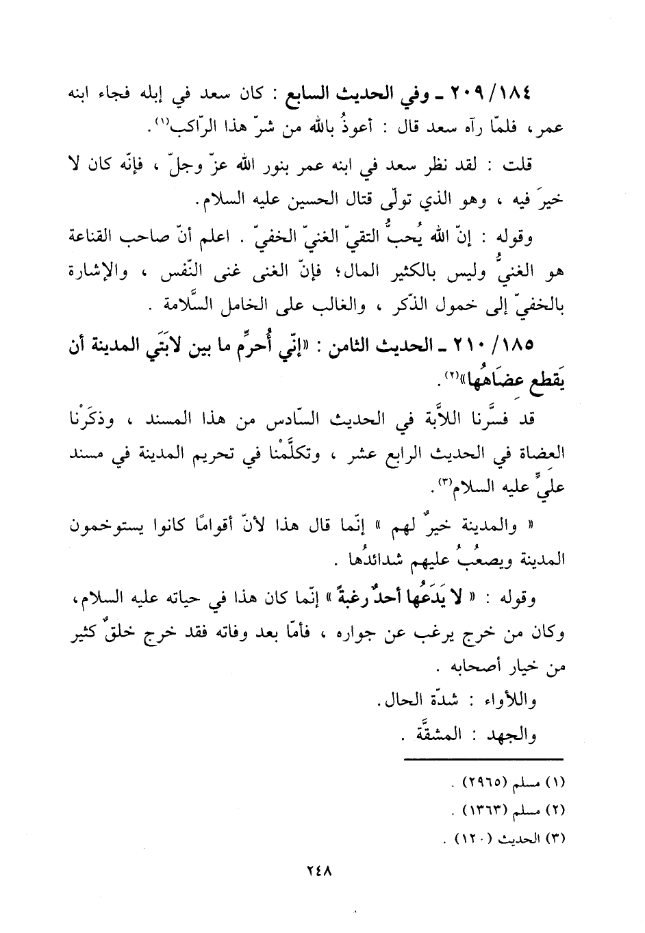 قد فسرنا اللابة فِي الحَدِيث السَّادِس من هَذَا الْمسند، وَذكرنَا الْعضَاة فِي الحَدِيث الرَّابِع عشر، وتكلمنا فِي تَحْرِيم الْمَدِينَة فِي مُسْند عَليّ عَلَيْهِ السَّلَام.