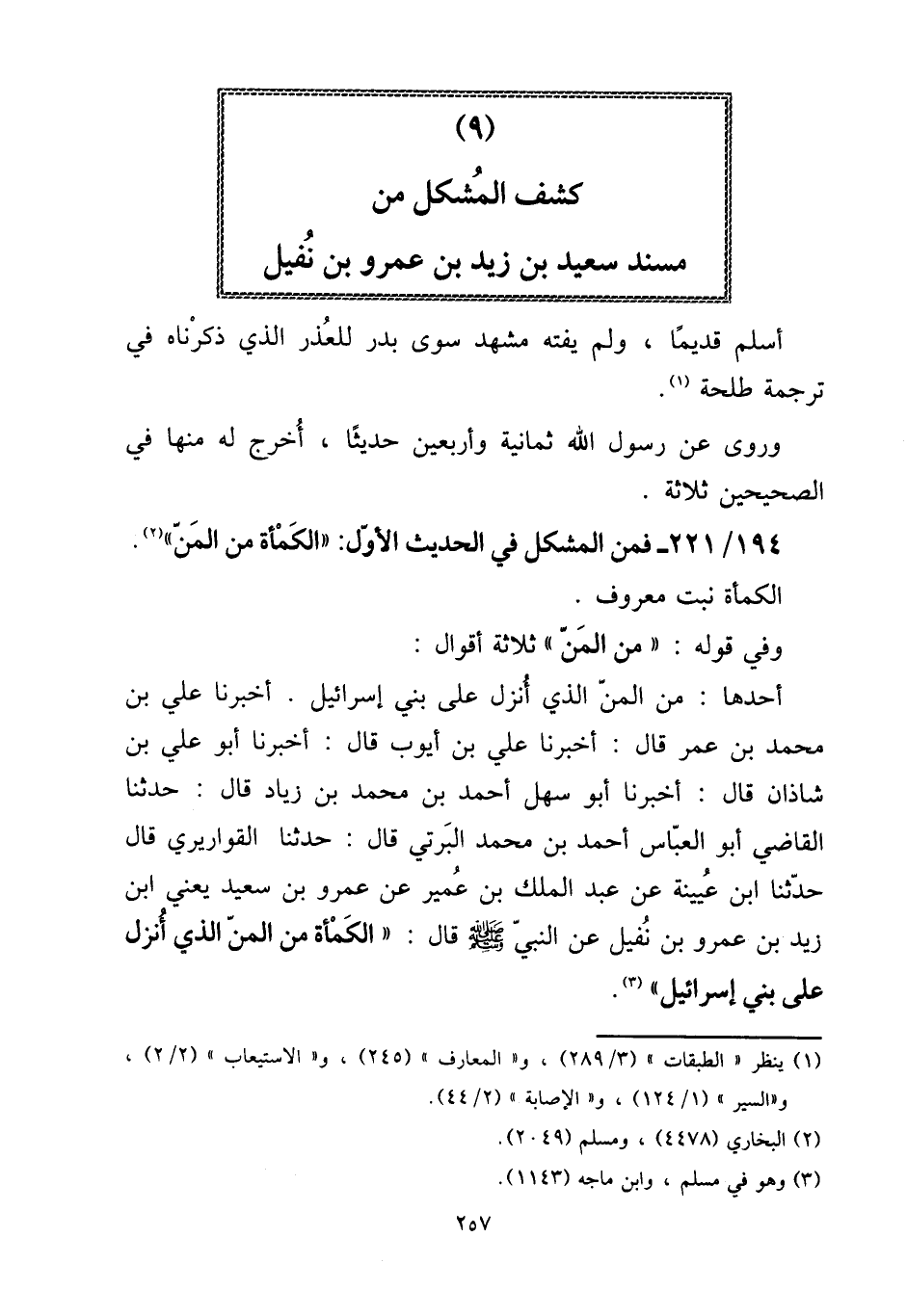 194 - / 221 - فَمن الْمُشكل فِي الحَدِيث الأول: " الكمأة من الْمَنّ ".