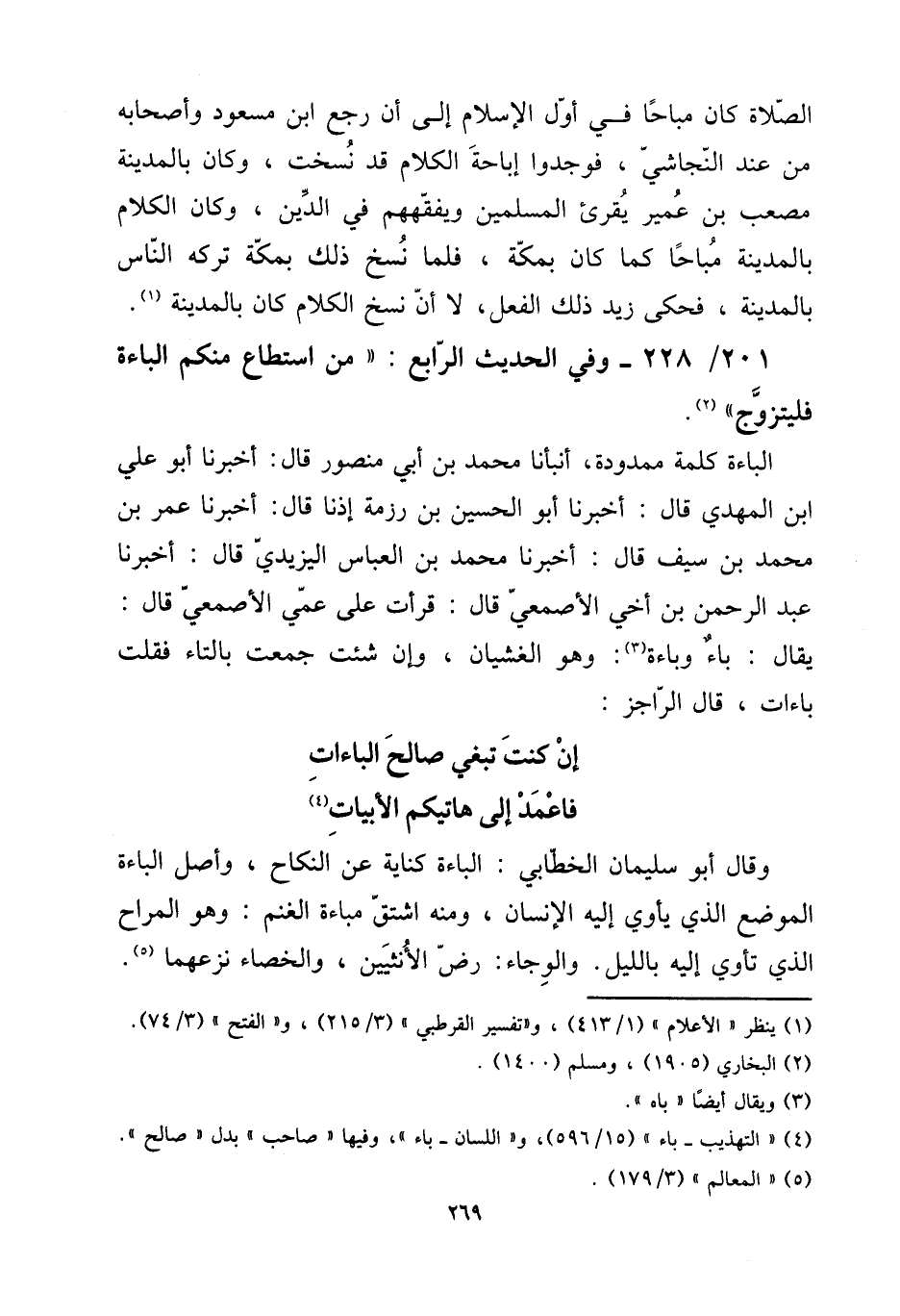 201 - / 228 - وَفِي الحَدِيث الرَّابِع: " من اسْتَطَاعَ مِنْكُم الْبَاءَة فليتزوج ".