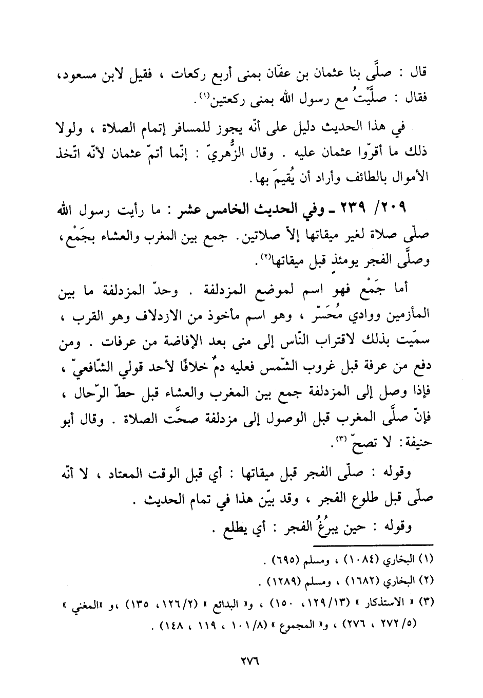 209 - / 239 - وَفِي الحَدِيث الْخَامِس عشر: مَا رَأَيْت رَسُول الله صلى صَلَاة لغير ميقاتها إِلَّا صَلَاتَيْنِ. جمع بَين الْمغرب وَالْعشَاء بِجمع، وَصلى الْفجْر يَوْمئِذٍ قبل ميقاتها.