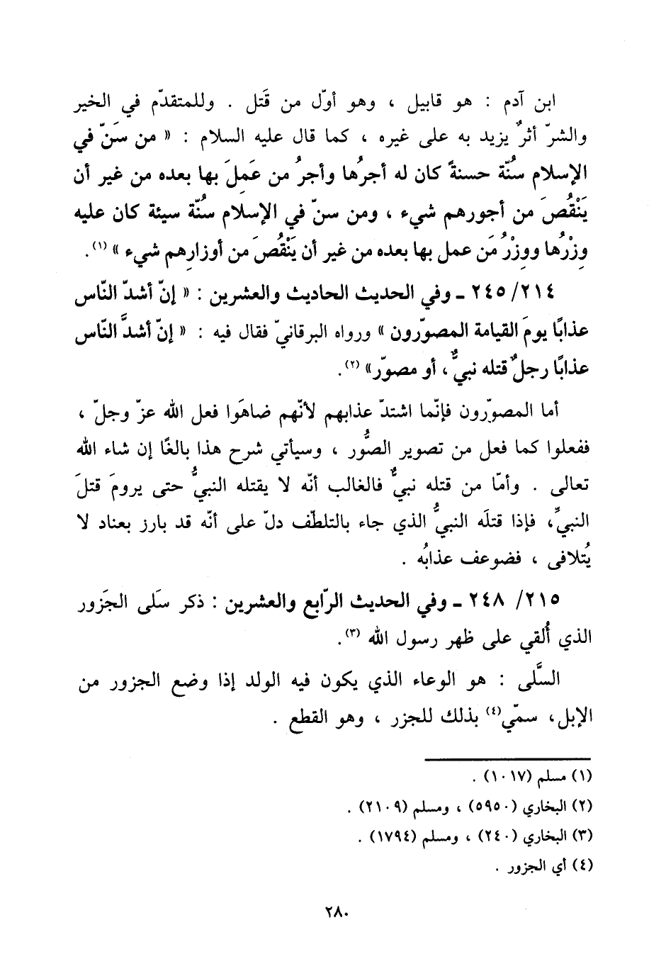 215 - / 248 - وَفِي الحَدِيث الرَّابِع وَالْعِشْرين: ذكر سلى الْجَزُور الَّذِي ألقِي على ظهر رَسُول الله.