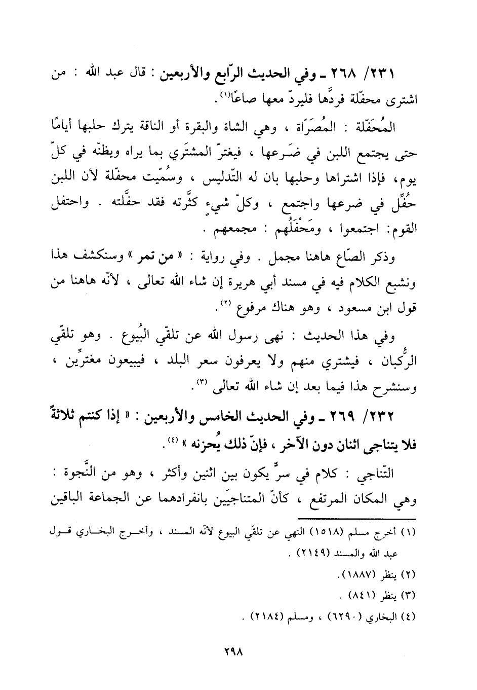 231 - / 268 - وَفِي الحَدِيث الرَّابِع وَالْأَرْبَعِينَ: قَالَ عبد الله: من اشْترى محفلة فَردهَا فليرد مَعهَا صَاعا.