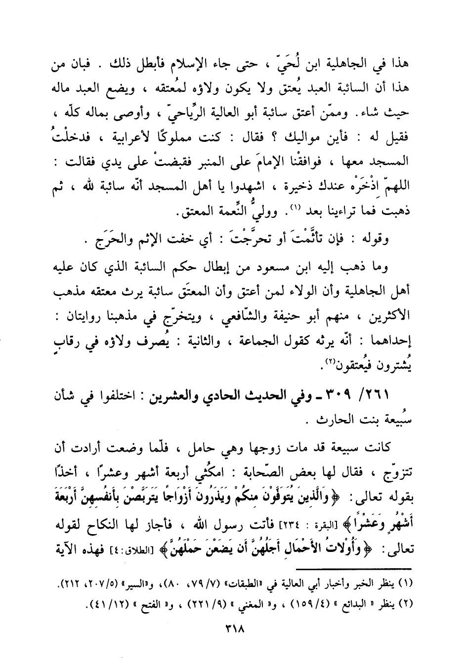 261 - / 309 - وَفِي الحَدِيث الْحَادِي وَالْعِشْرين: اخْتلفُوا فِي شَأْن سبيعة بنت الْحَارِث.
