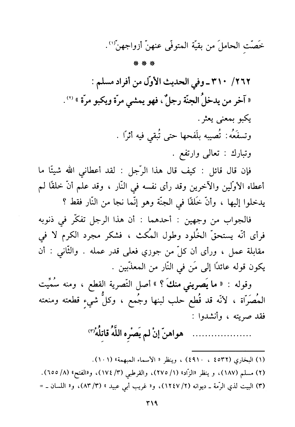 262 - / 310 - وَفِي الحَدِيث الأول من أَفْرَاد مُسلم: