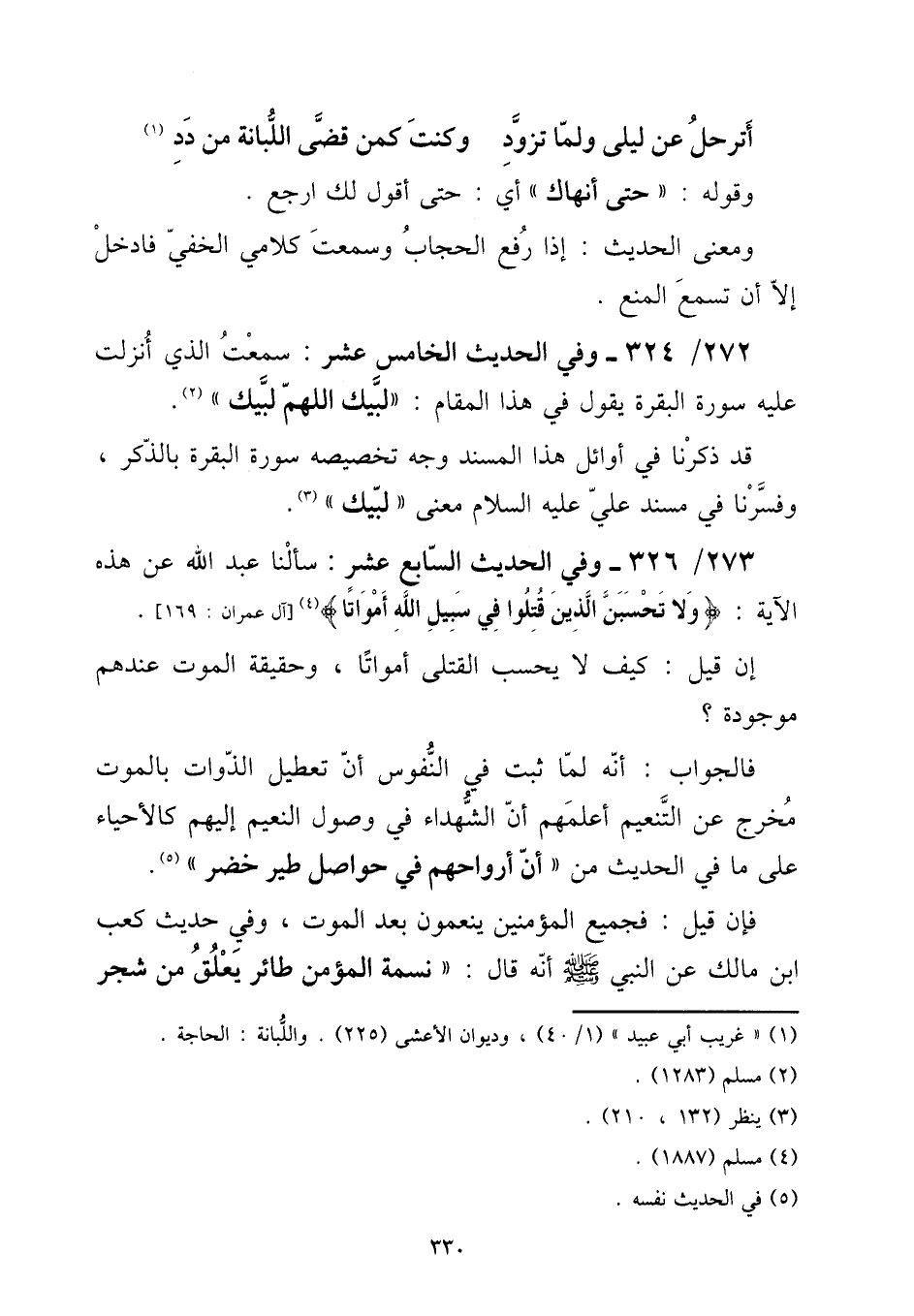 273 - / 326 - وَفِي الحَدِيث السَّابِع عشر: سَأَلنَا عبد الله عَن هَذِه الْآيَة: {وَلَا تحسبن الَّذين قتلوا فِي سَبِيل الله أَمْوَاتًا} [آل عمرَان: 169] .