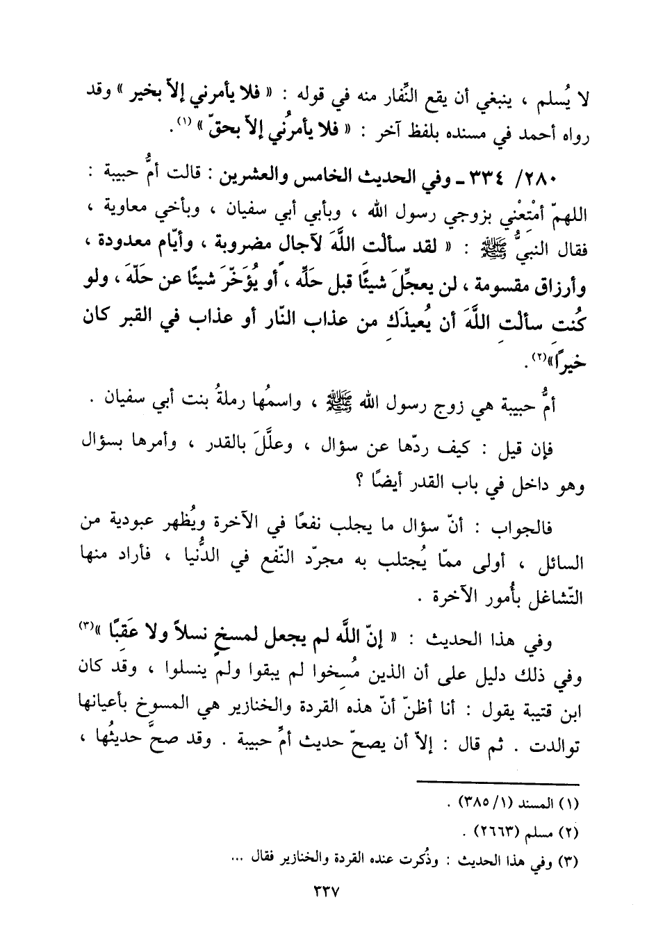 380 - / 334 - وَفِي الحَدِيث الْخَامِس وَالْعِشْرين: قَالَت أم حَبِيبَة: اللَّهُمَّ أمتعني بزوجي رَسُول الله، وبأبي أبي سُفْيَان، وبأخي مُعَاوِيَة، فَقَالَ النَّبِي صلى الله عَلَيْهِ وَسلم: " لقد سَأَلت الله لآجال مَضْرُوبَة، وَأَيَّام مَعْدُودَة، وأرزاق مقسومة، لن يعجل شَيْئا قبل حلّه، أَو يُؤَخر شَيْئا عَن حلّه، وَلَو كنت سَأَلت الله أَن يعيذك من عَذَاب النَّار أَو عَذَاب فِي الْقَبْر كَانَ خيرا ".