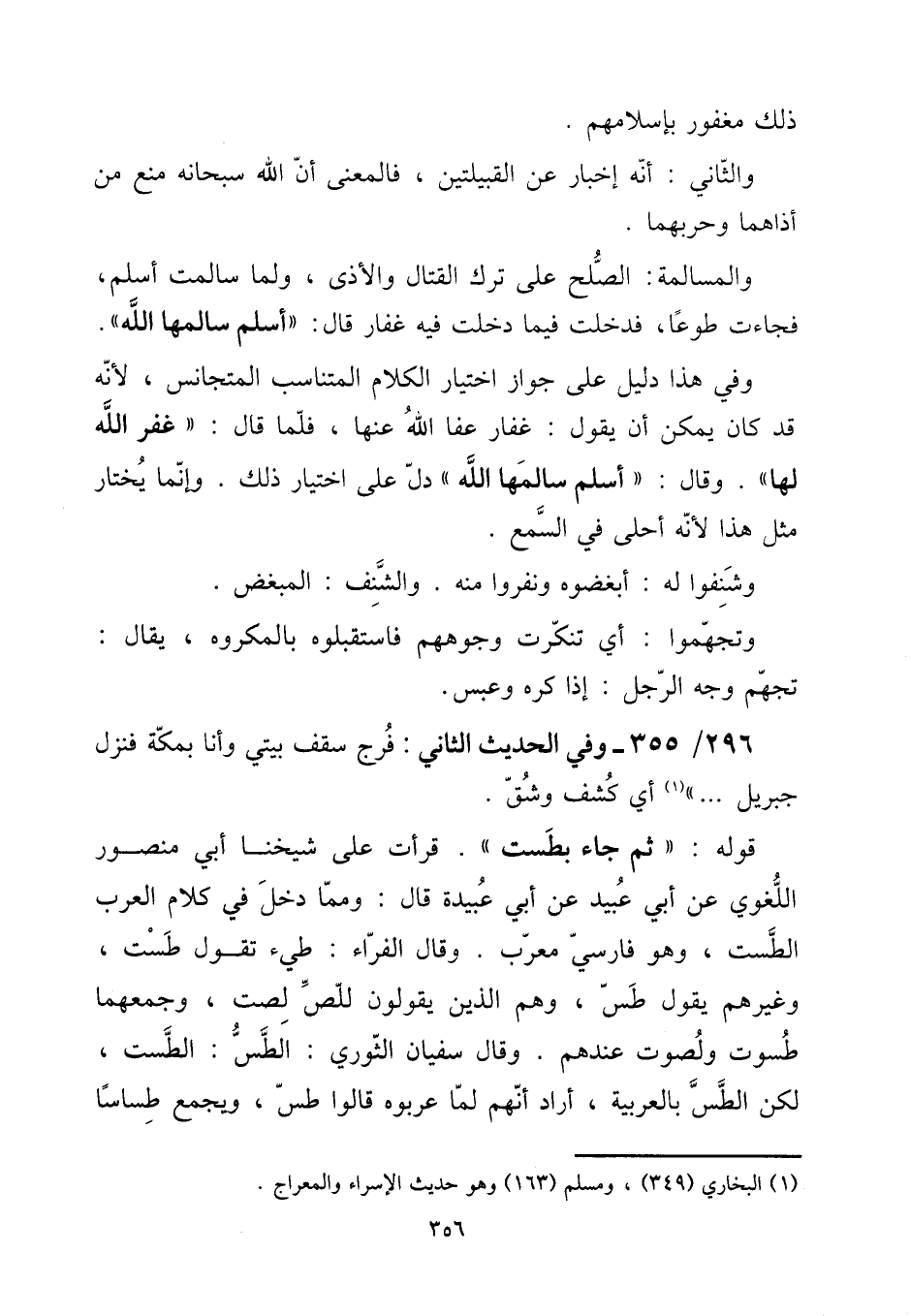 296 - / 355 - وَفِي الحَدِيث الثَّانِي: فرج سقف بَيْتِي وَأَنا بِمَكَّة فَنزل جِبْرِيل ... " أَي كشف وشق.
