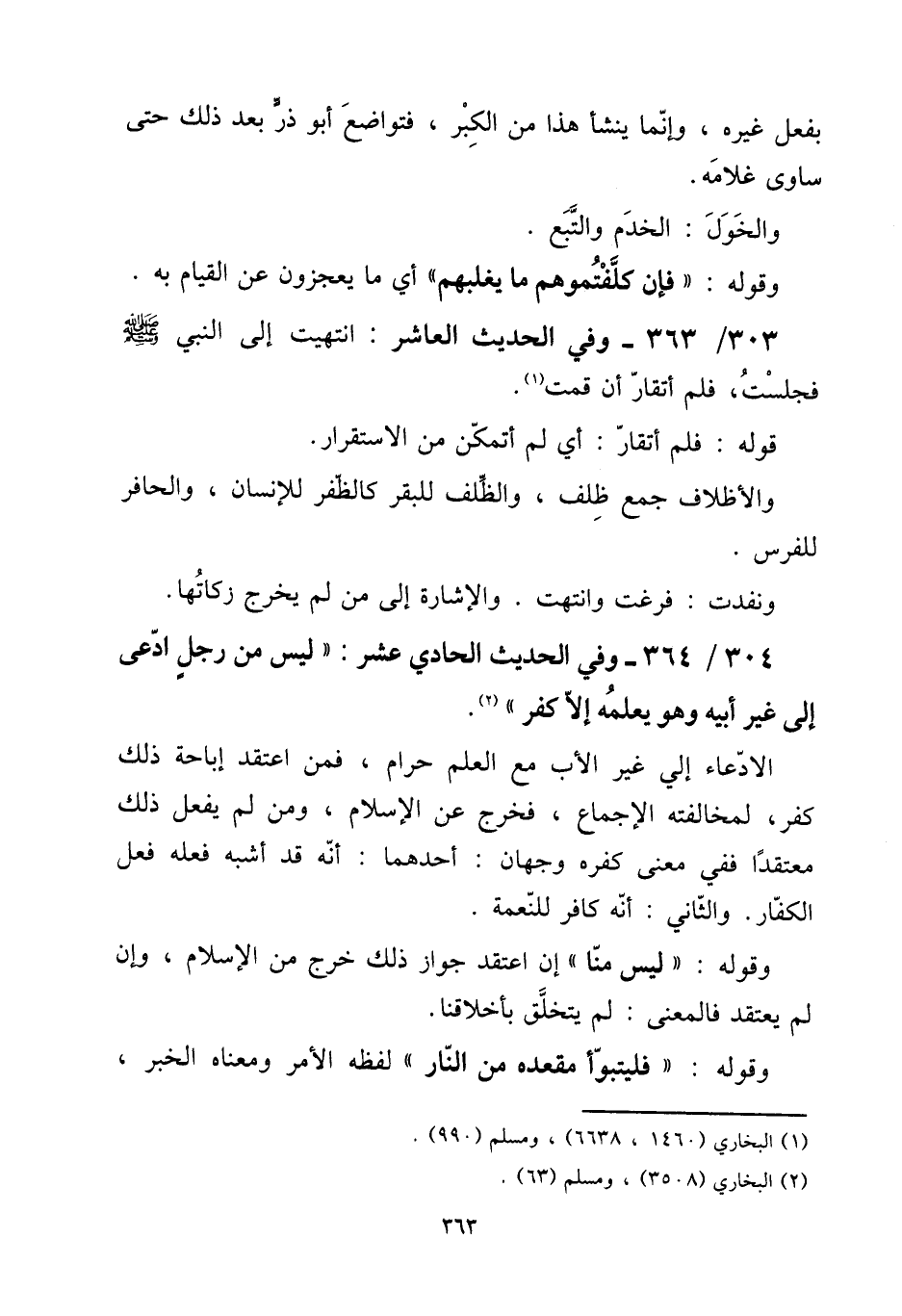 304 - / 364 - وَفِي الحَدِيث الْحَادِي عشر: " لَيْسَ من رجل ادّعى إِلَى غير أَبِيه وَهُوَ يُعلمهُ إِلَّا كفر ".
