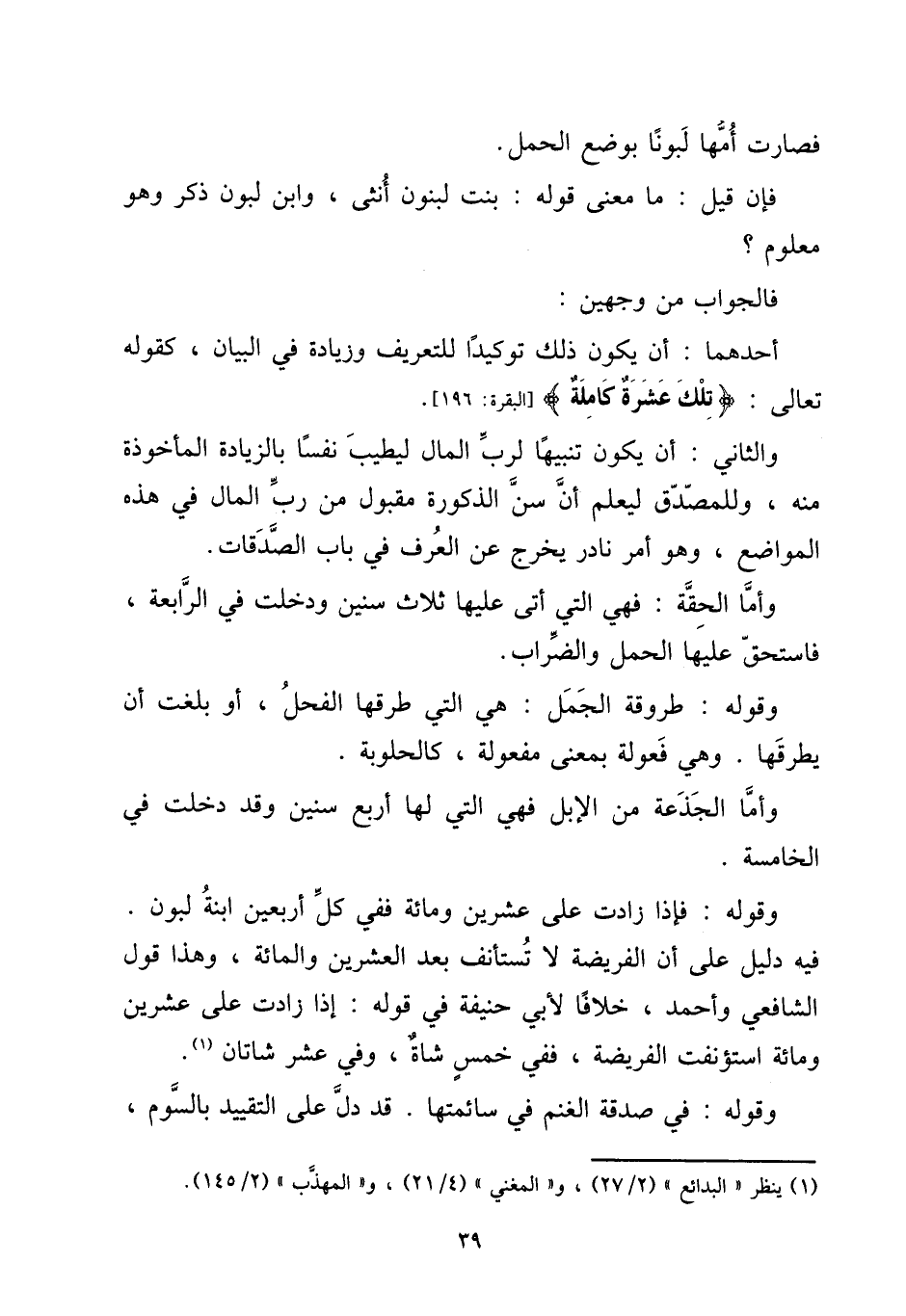 وَالثَّانِي: أَن يكون تَنْبِيها لرب المَال ليطيب نفسا بِالزِّيَادَةِ الْمَأْخُوذَة مِنْهُ، وللمصدق ليعلم أَن سنّ الذُّكُورَة مَقْبُول من رب المَال فِي هَذِه الْمَوَاضِع، وَهُوَ أَمر نَادِر يخرج عَن الْعرف فِي بَاب الصَّدقَات. وَأما الحقة: فَهِيَ الَّتِي أَتَى عَلَيْهَا ثَلَاث سِنِين وَدخلت فِي الرَّابِعَة، فَاسْتحقَّ عَلَيْهَا الْحمل والضراب.