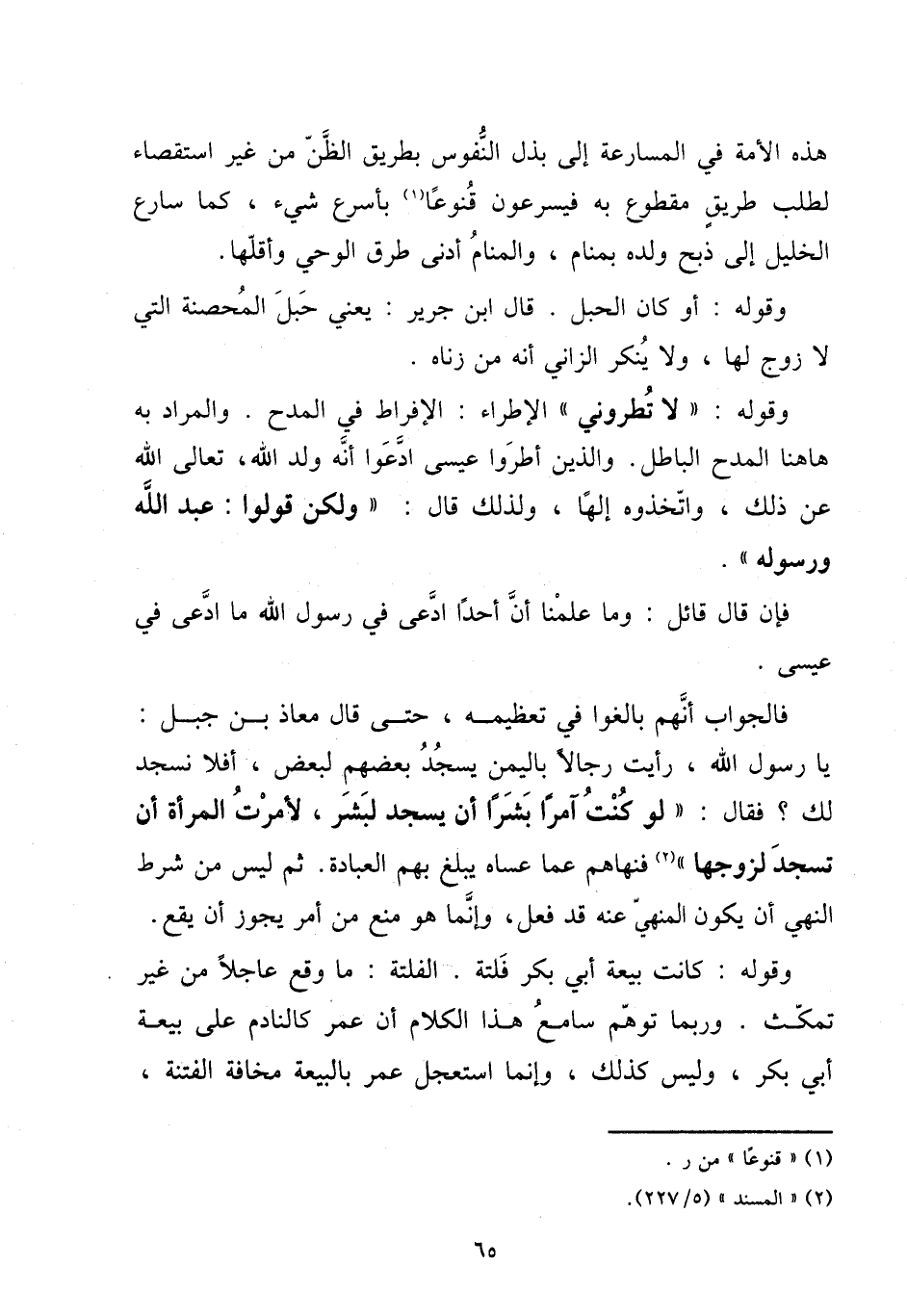 وَقَوله: " لَا تطروني " الإطراء: الإفراط فِي الْمَدْح. وَالْمرَاد بِهِ هَاهُنَا الْمَدْح الْبَاطِل. وَالَّذين أطروا عِيسَى ادعوا أَنه ولد الله، تَعَالَى الله عَن ذَلِك، واتخذوه إِلَهًا، وَلذَلِك قَالَ: " وَلَكِن قُولُوا: عبد الله وَرَسُوله ".