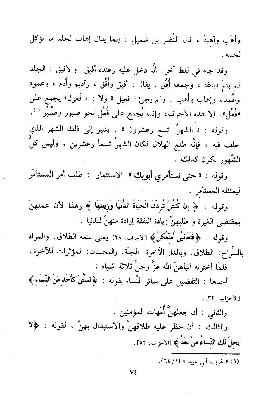 وَقد جَاءَ فِي لفظ آخر: أَنه دخل عَلَيْهِ وَعِنْده أفِيق. والأفيق: الْجلد لم يتم دباغه، وَجمعه أفق. يُقَال: أفِيق وأفق، وأديم وأدم، وعمود وَعمد، وإهاب وَأهب. وَلم يجِئ " فعيل " وَلَا: " فعول " يجمع على " فعل ": إِلَّا هَذِه الأحرف، وَإِنَّمَا يجمع على فعل نَحْو صبور وصبر.