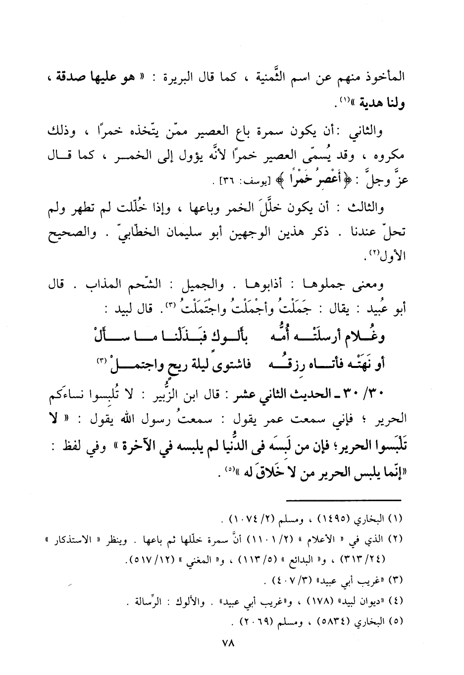 30 - / 30 - الحَدِيث الثَّانِي عشر: قَالَ ابْن الزبير: لَا تلبسوا نساءكم الْحَرِير؛ فَإِنِّي سَمِعت عمر يَقُول: سَمِعت رَسُول الله يَقُول: " لَا تلبسوا الْحَرِير؛ فَإِن من لبسه فِي الدُّنْيَا لم يلْبسهُ فِي الْآخِرَة " وَفِي لفظ: " إِنَّمَا يلبس الْحَرِير من لَا خلاق لَهُ ".