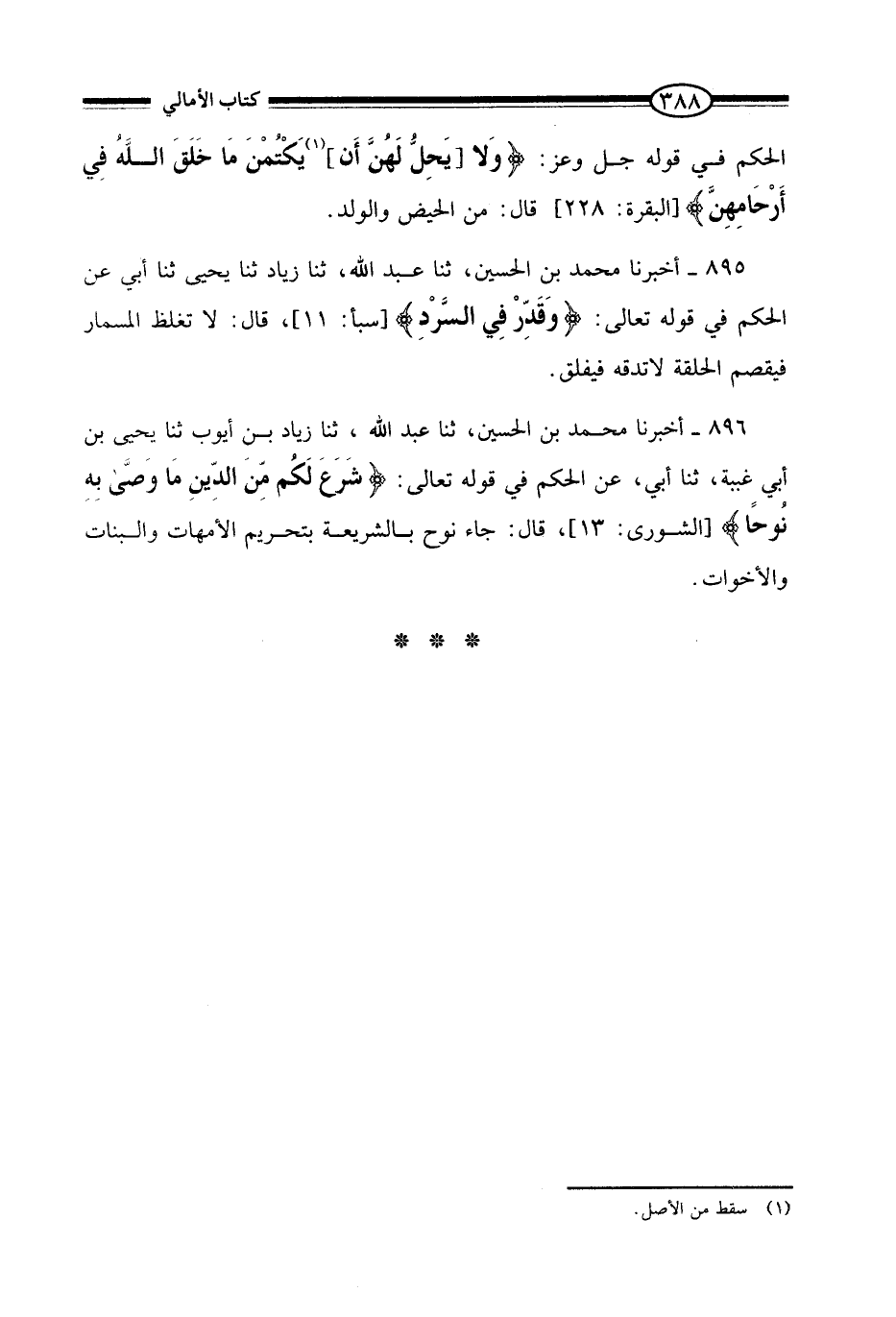 896 - أَخْبَرَنَا مُحَمَّدُ بْنُ الْحُسَيْنِ، ثنا عَبْدُ اللَّهِ، ثنا زِيَادٌ، ثنا يَحْيَى، ثنا أَبِي، عَنِ الْحَكَمِ، فِي قَوْلِهِ تَعَالَى: {وَقَدِّرْ فِي السَّرْدِ} [سبأ: 11] ، قَالَ: «§لَا تُغْلِظِ الْمِسْمَارَ فَيَقْصِمَ الْحَلْقَةَ، لَا تَدُقَّهُ فَيَفْلُقَ»