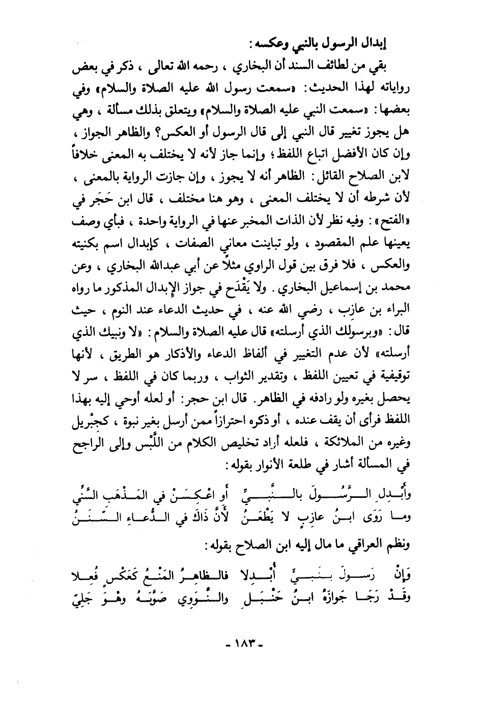 وأَبْدِلِ الرَّسُولَ بالنَّبيِّ ... أَو اعْكِسَنْ في المَذْهَبِ السَّنِّي