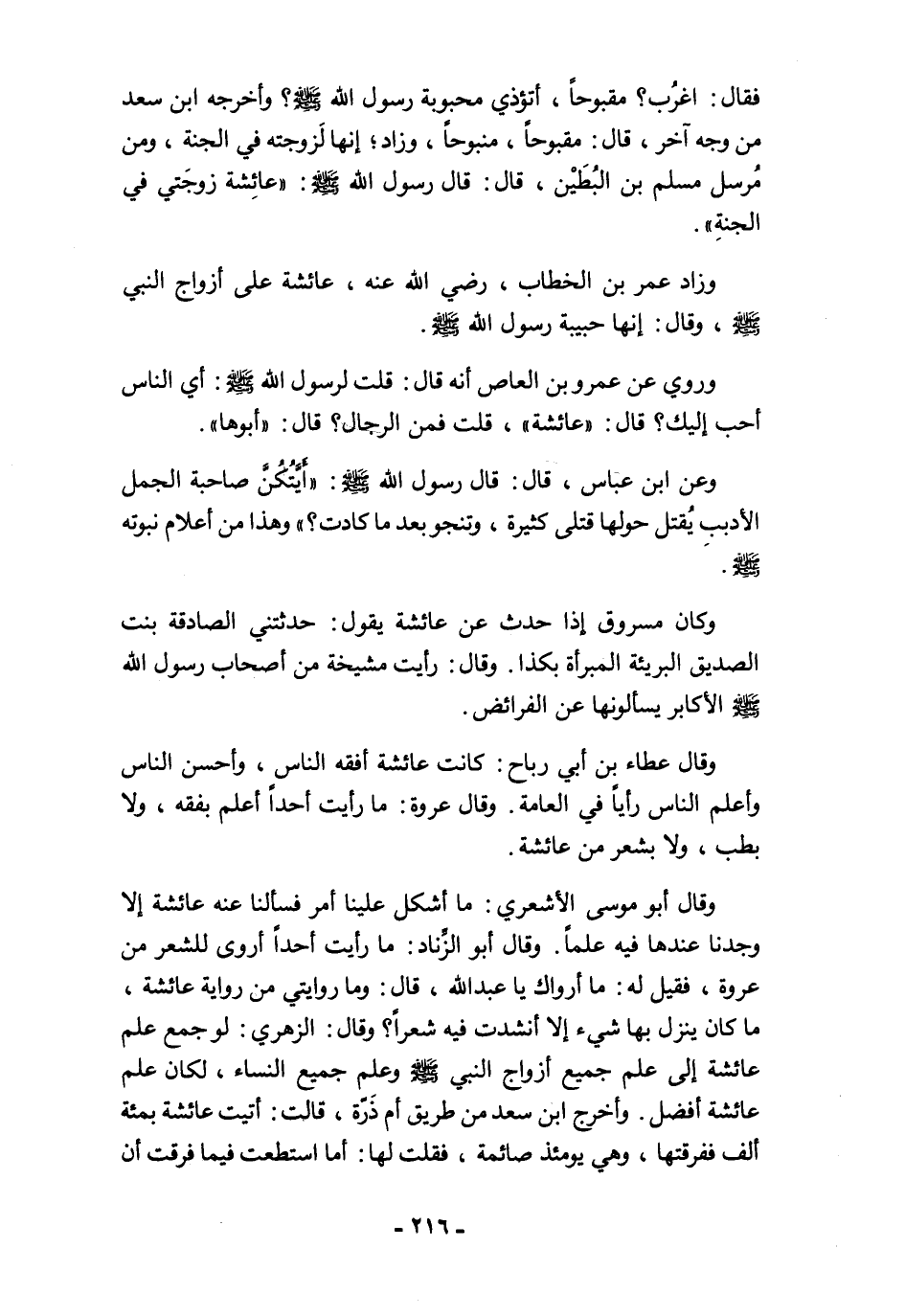وزاد عمر بن الخطاب، رضي الله عنه، عائشة على أزواج النبي - صلى الله عليه وسلم -، وقال: إنها حبيبة رسول الله - صلى الله عليه وسلم -.