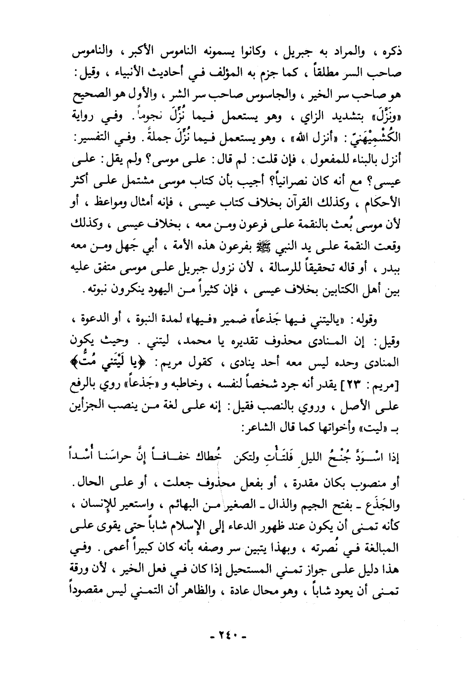 ذكره، والمراد به جبريل، وكانوا يسمونه الناموس الأكبر، والناموس صاحب السر مطلقًا، كما جزم به المؤلف في أحاديث الأنبياء، وقيل: هو صاحب سر الخير، والجاسوس صاحب سر الشر، والأول هو الصحيح "ونَزَّلَ" بتشديد الزاي، وهو يستعمل فيما نُزِّلَ نجومًا. وفي رواية الكُشْمِيْهَنيّ: "أنزل الله"، وهو يستعمل فيما نُزِّلَ جملةً. وفي التفسير: أنزل بالبناء للمفعول، فإن قلت: لم قال: على موسى؟ ولم يقل: على عيسى؟ مع أنه كان نصرانيًا؟ أجيب بأن كتاب موسى مشتمل على أكثر الأحكام، وكذلك القرآن بخلاف كتاب عيسى، فإنه أمثال ومواعظ، أو لأن موسى بُعث بالنقمة على فرعون ومن معه، بخلاف عيسى، وكذلك وقعت النقمة على يد النبي - صلى الله عليه وسلم - بفرعون هذه الأمة، أبي جَهل ومن معه ببدر، أو قاله تحقيقًا للرسالة، لأن نزول جبريل على موسى متفق عليه بين أهل الكتابين بخلاف عيسى، فإن كثيرًا من اليهود ينكرون نبوته.
