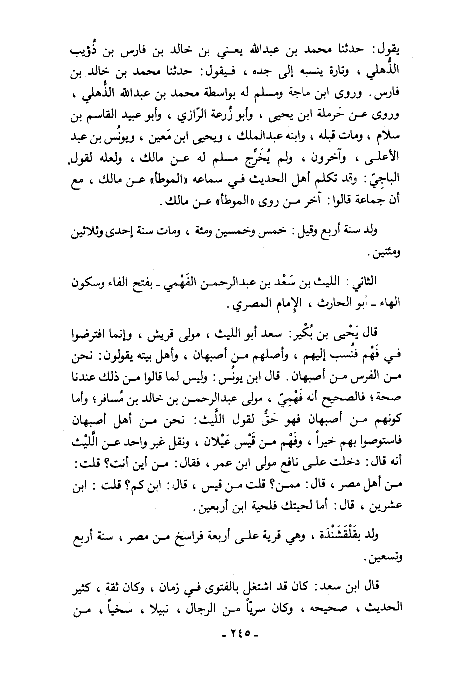 الثاني: الليث بن سَعْد بن عبد الرحمن الفَهْمي -بفتح الفاء وسكون الهاء- أبو الحارث، الإِمام المصري.