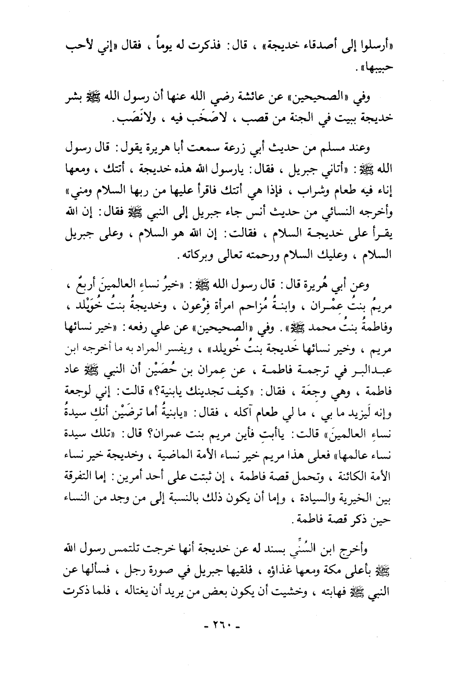 "أرسلوا إلى أصدقاء خديجة"، قال: فذكرت له يومًا، فقال "إني لأحب حبيبها".